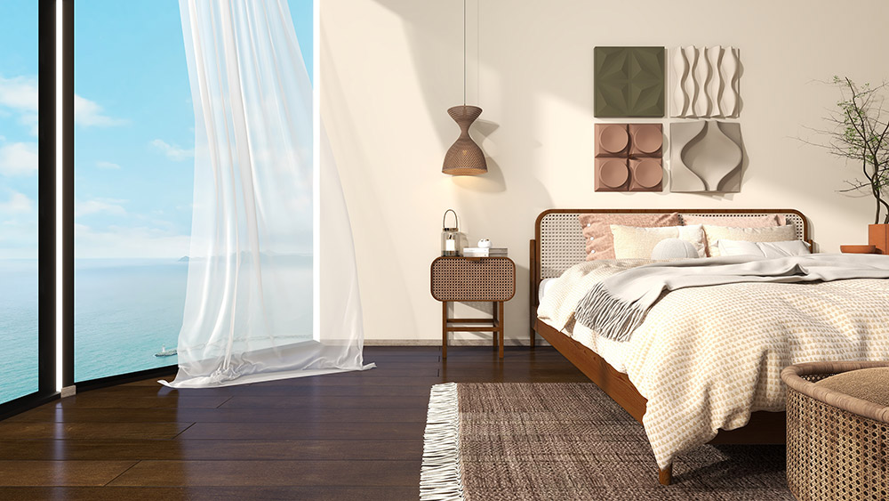 充分汲取天地之精华生长而成的优质阔变豆,绚丽的花纹,致密的纹理,木材间散发着古朴风韵,交错的纹理大大延长了产品的使用寿命。