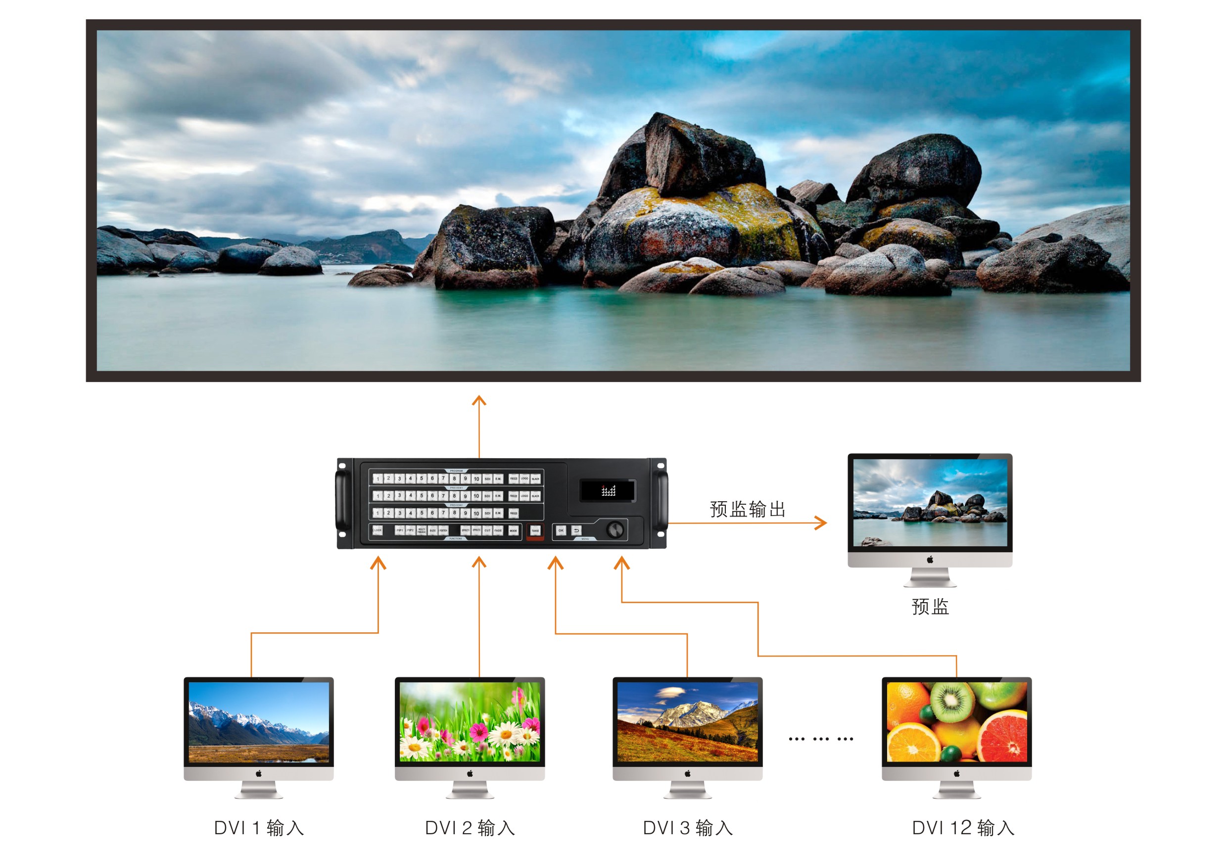MIG-630C支持12路输入信号及支持12路输入信号之间任意进行预监切换;