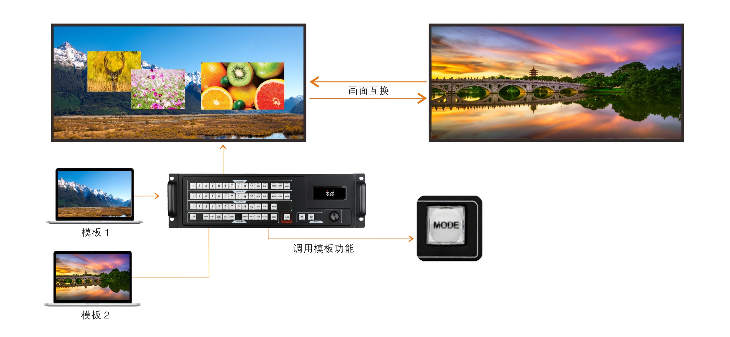 在活动现场只需加载对应模板进行一键切换,减少设置繁琐,消除操作隐患。