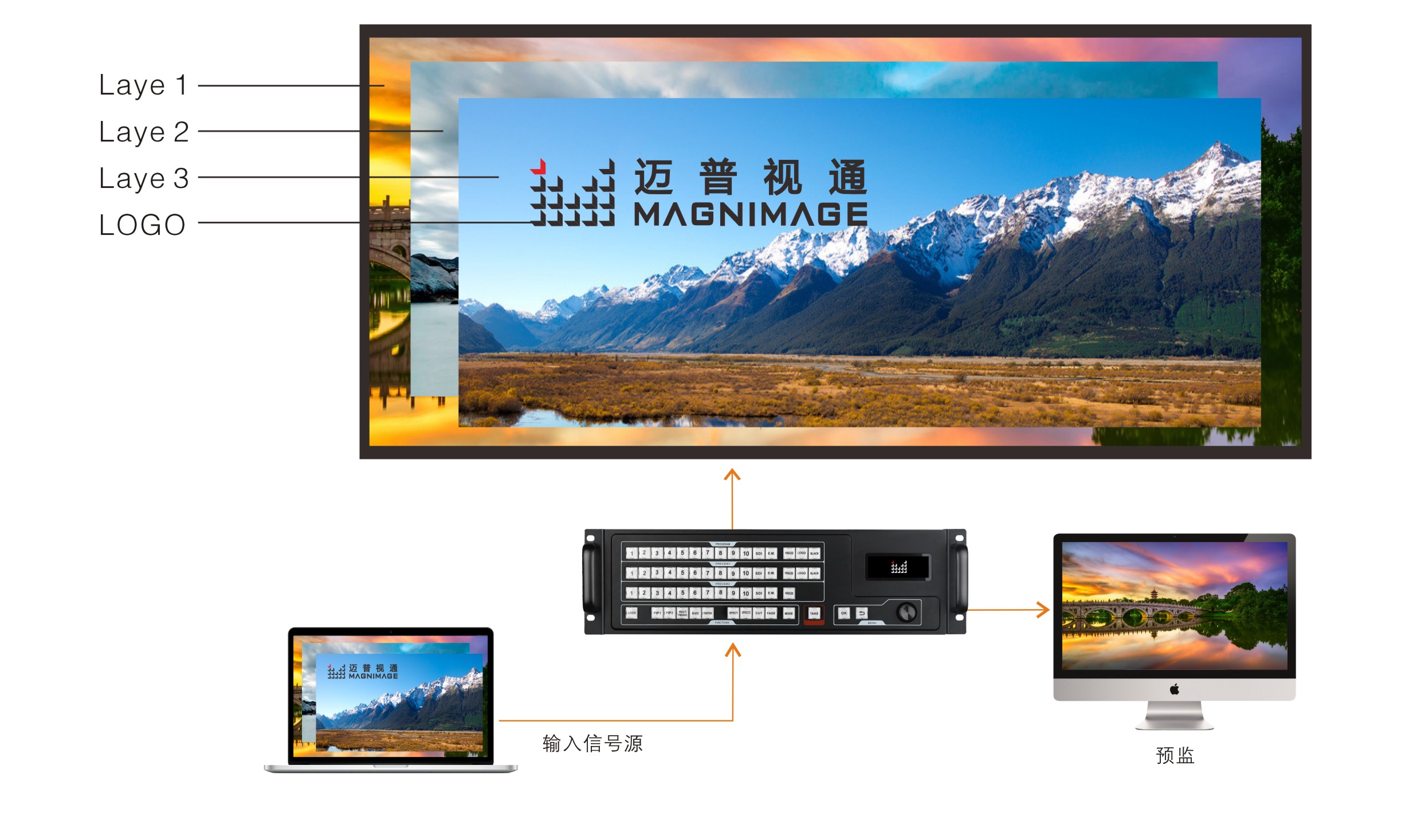 会议活动中,全屏主题图片先存入MIG-630C,通过LOGO按键一键调用,省去多次切换主题背景繁琐;