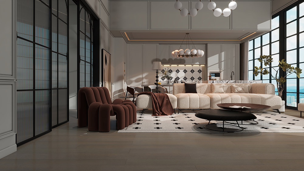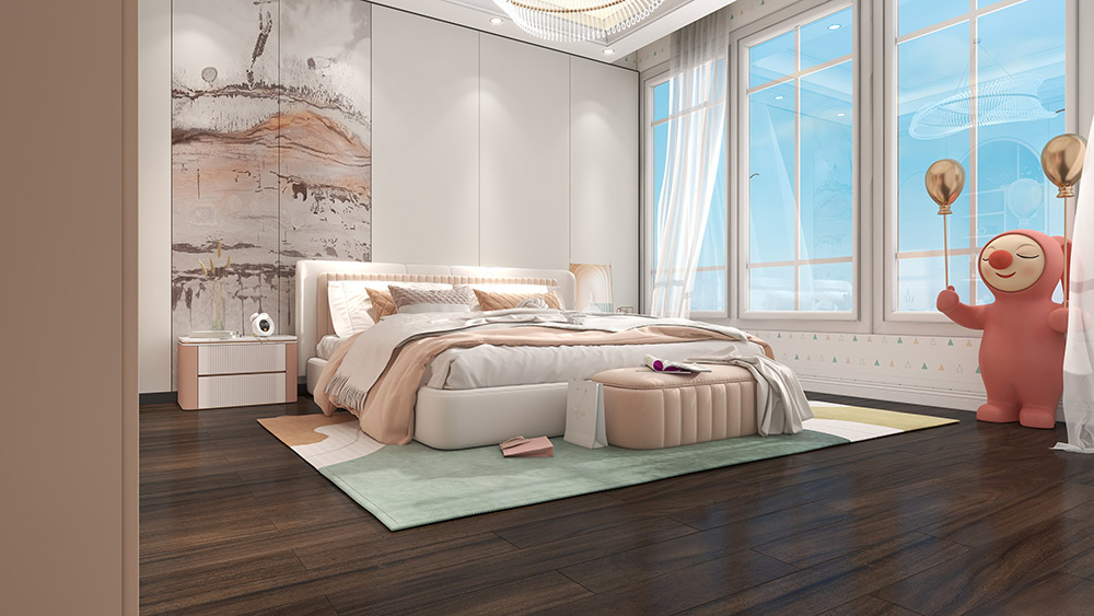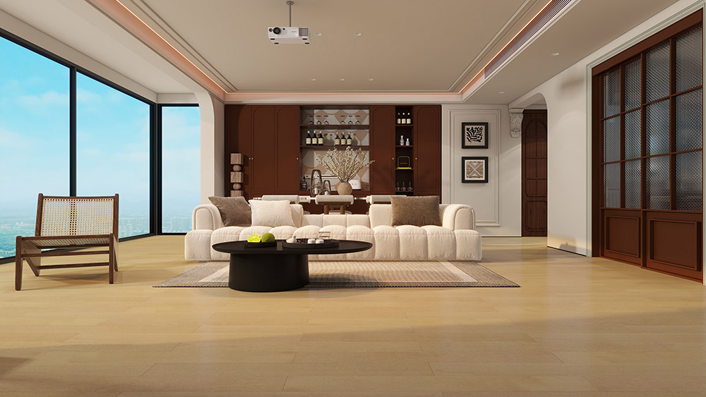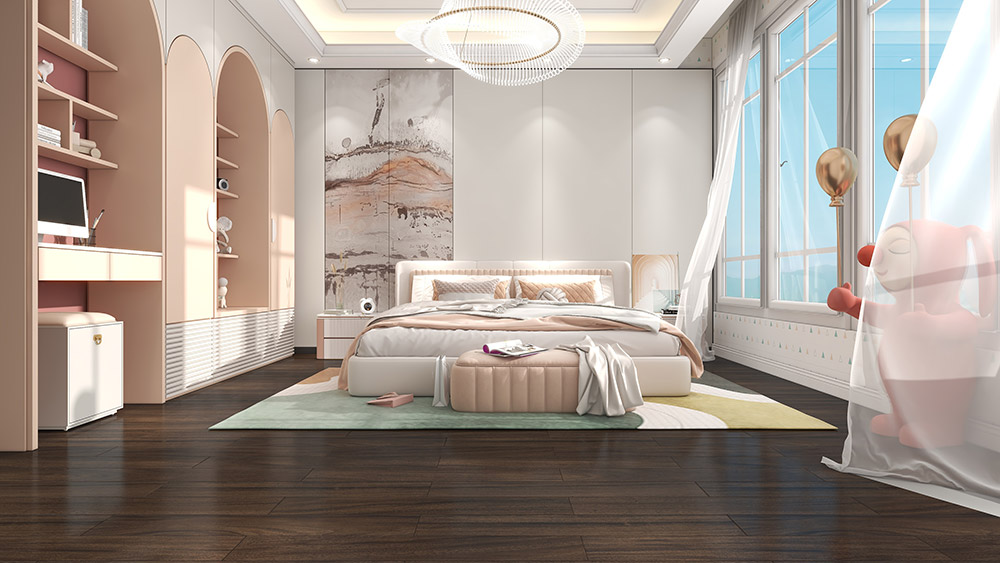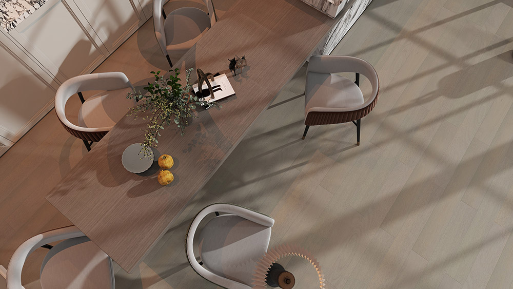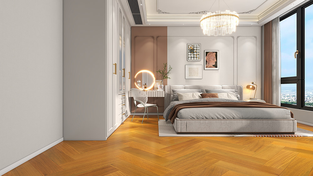 由于纽墩豆地板色差小,花纹平和,色彩清新淡雅,因此在装修风格方面更加适合简约及田园的装修风格,但搭配其他大众性的装修风格,也能很好的结合。