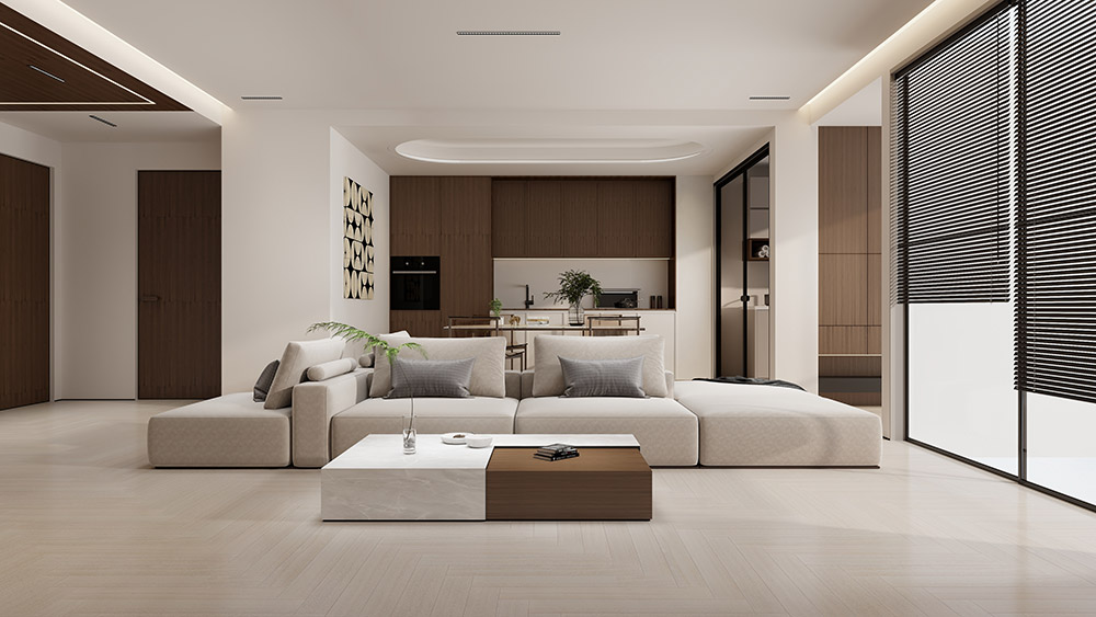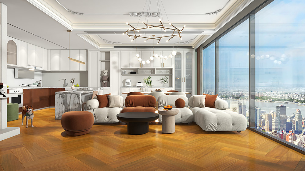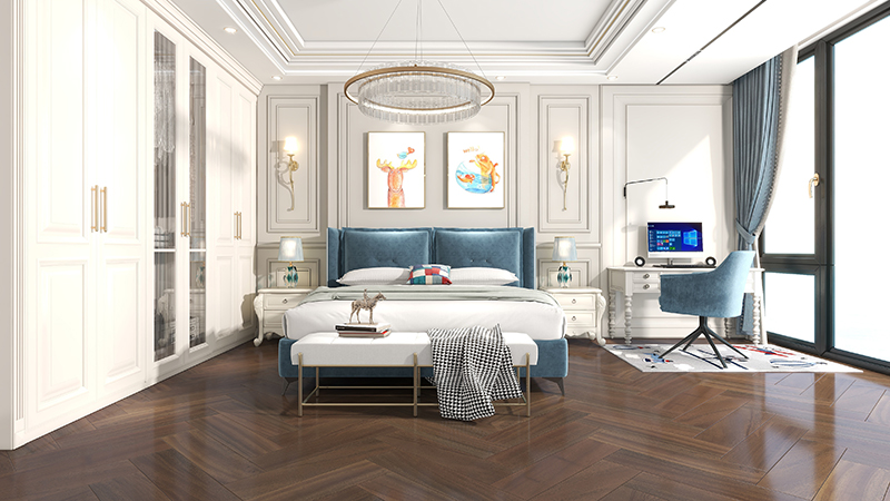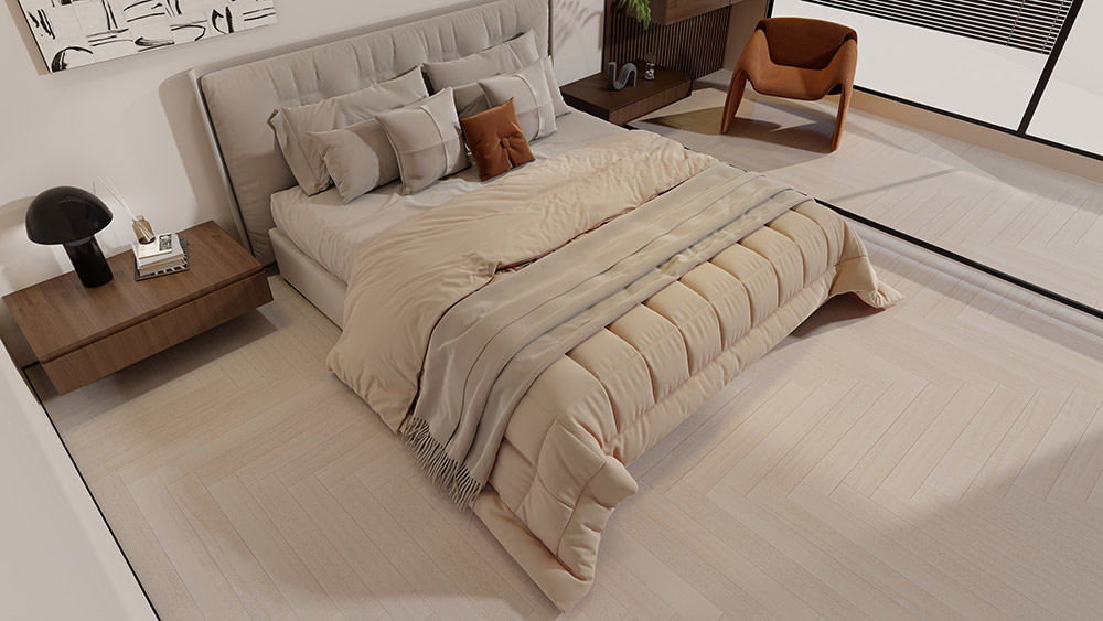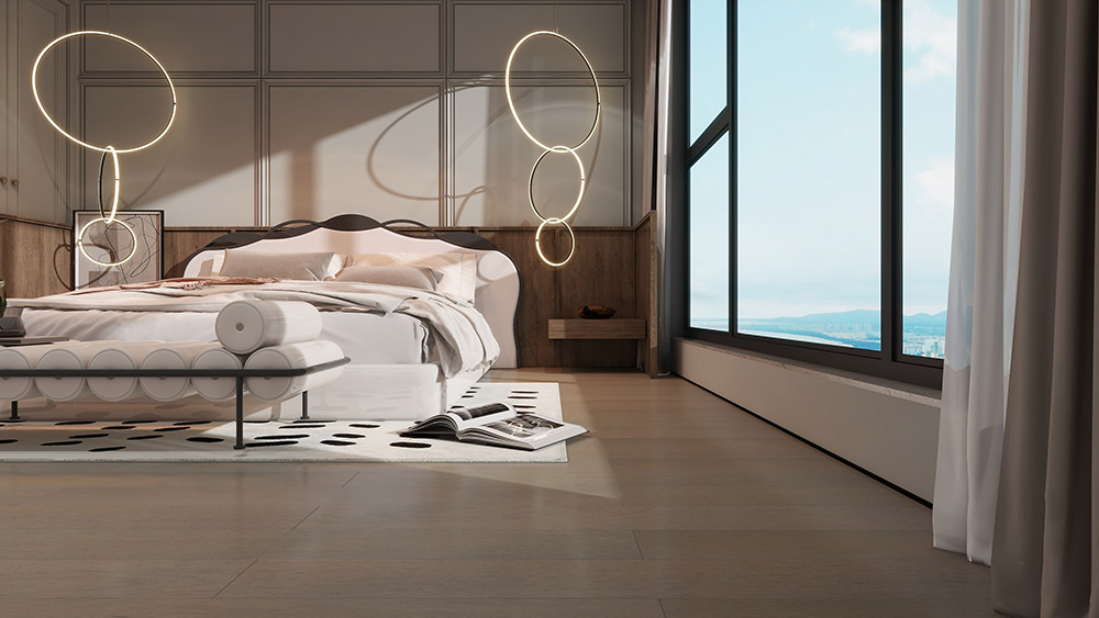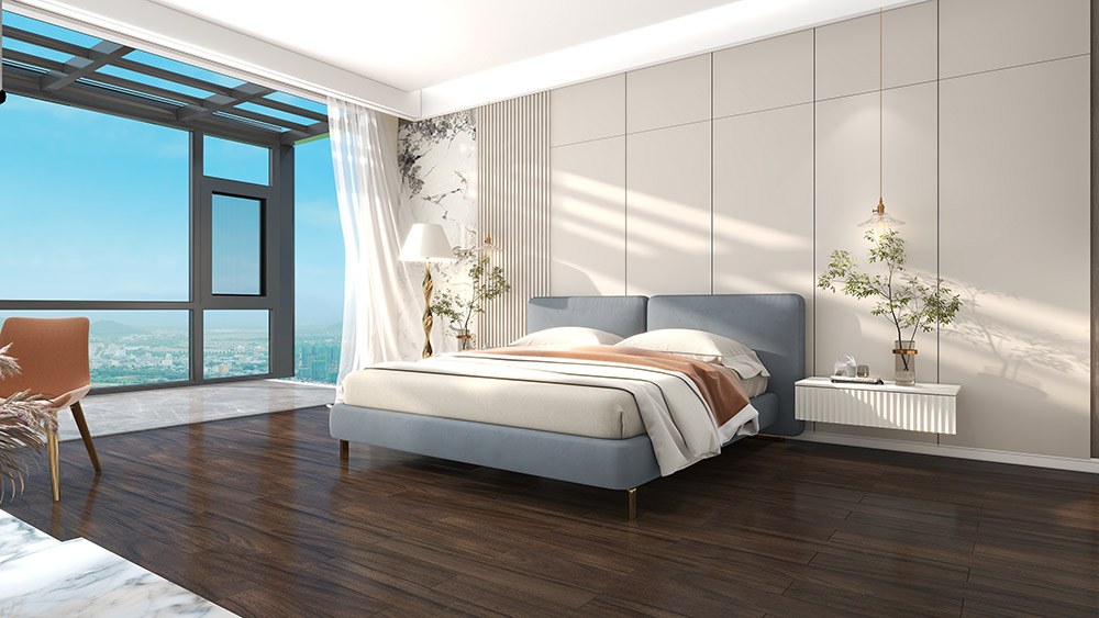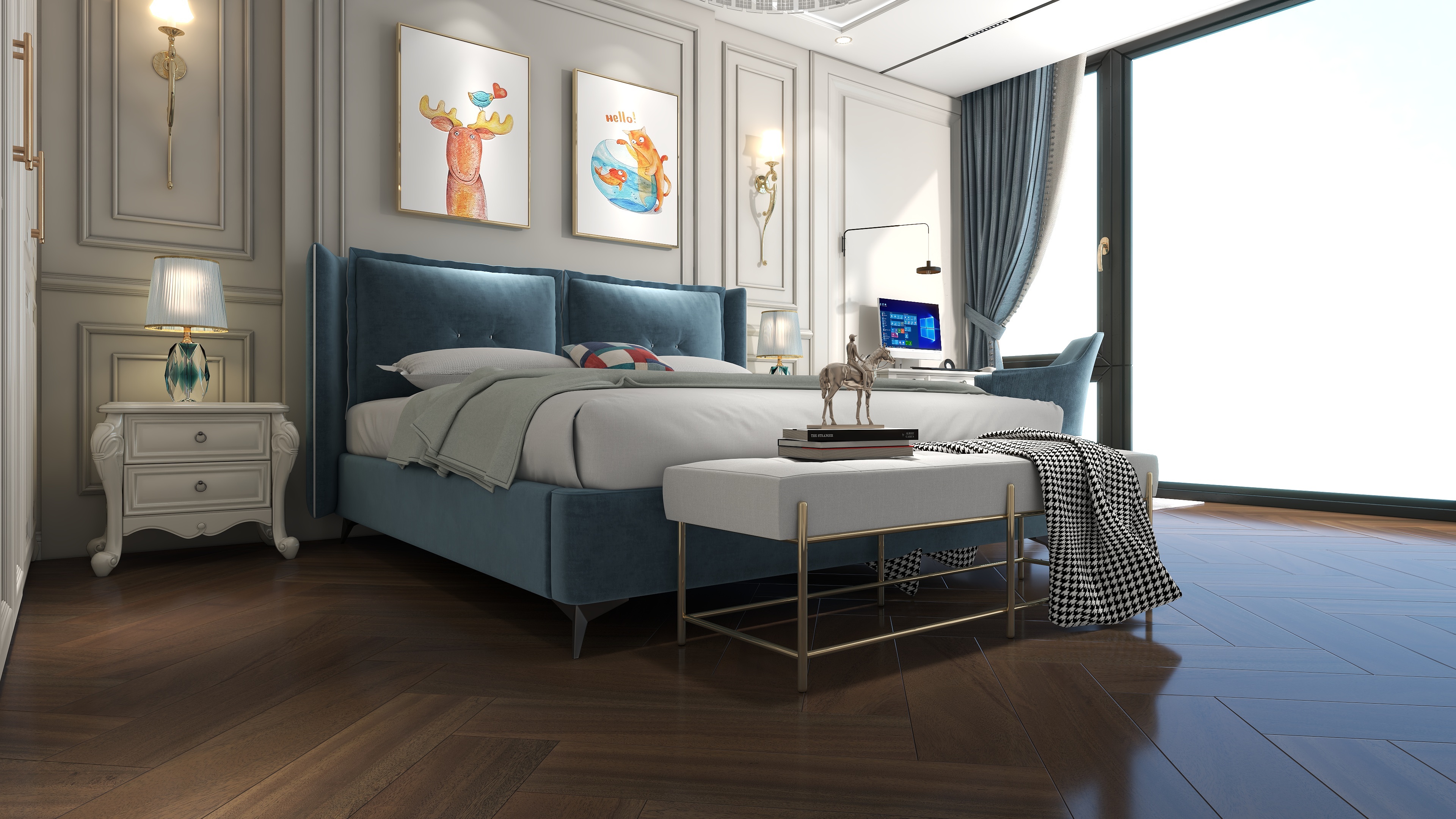 由于纽墩豆地板色差小,花纹平和,色彩清新淡雅,因此在装修风格方面更加适合简约及田园的装修风格,但搭配其他大众性的装修风格,也能很好的结合。