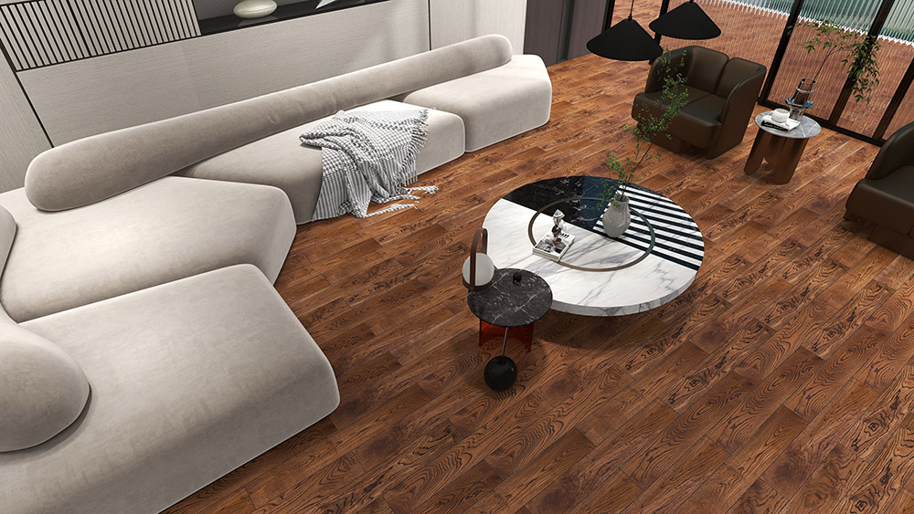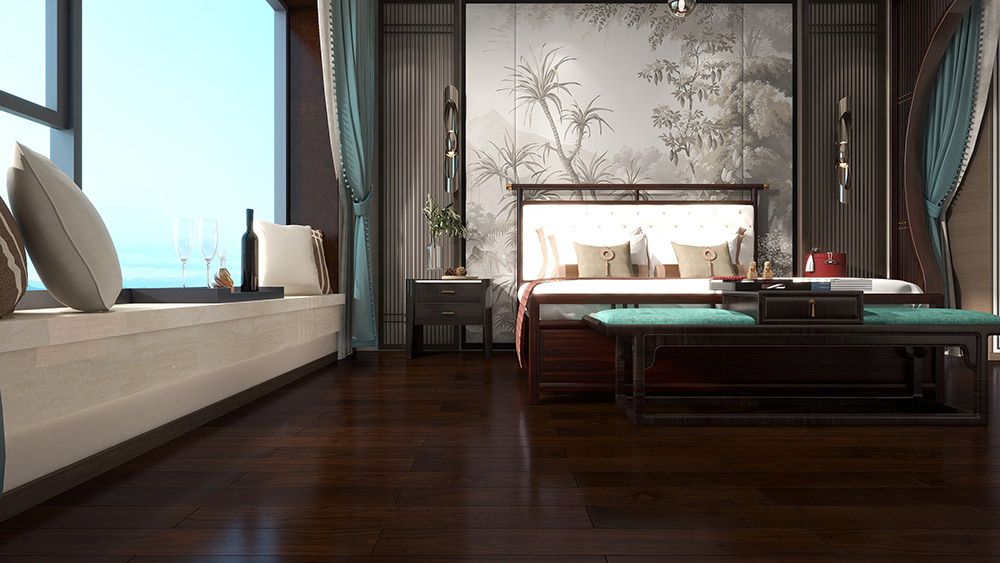 番龙眼实木地板油吸收性强,颜色自然柔和、纹理清晰真实,保留木材本质的色调且均匀,不会出现色差。安装效果好,给人一种古香古色感觉。